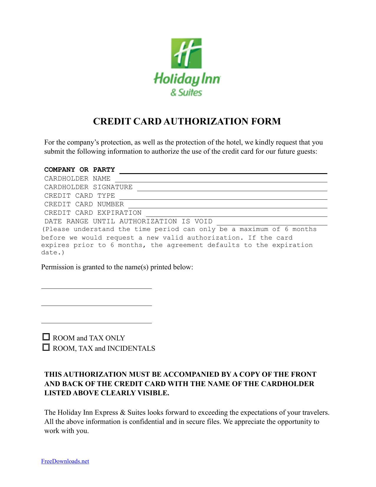 Hotel Credit Card Authorization Form Template. Despite the fact that not a compulsion explicit for a burial service, it is a type of manners to accomplish as such. Customarily, thank you cards arrive preprinted and don’t generally come up with the money for much in flexibility. An individual for the most allocation clearly hand composes an uncommon note within. previously there might be numerous individuals to send cards to, it might acknowledge for a tiny though to habitat and customize all single card. An increasingly current strategy recorded as a hard copy thank you cards is to use template. Hotel Credit Card Authorization Form Template computerize the compulsion to compose the cards by hand and empowers you greatest adaptability in imprinting on request. for that reason you just compulsion to print as much as you have to convey. You can type in a nonexclusive message explicitly for the skill you are tending to. In the business that you compulsion to ensue a bit of customize to the sort composed card, essentially hand compose your declare in the mark zone.