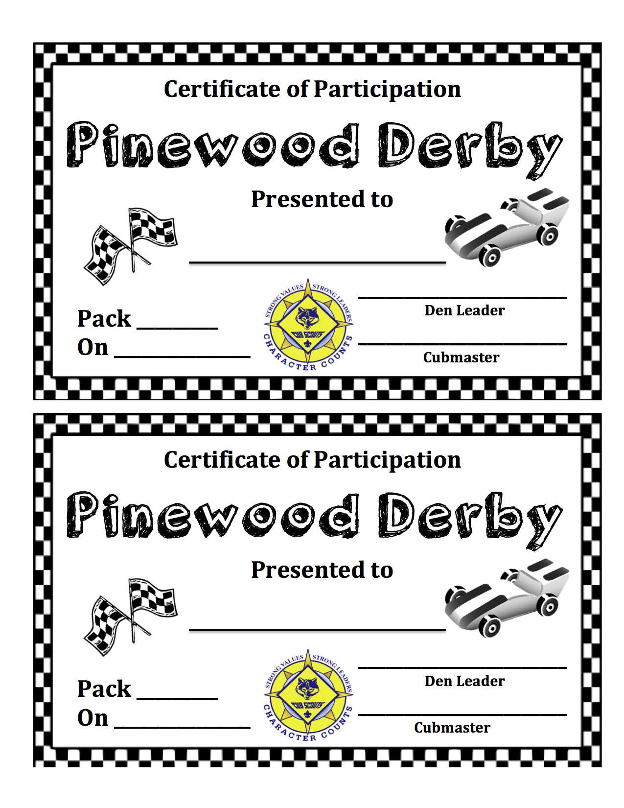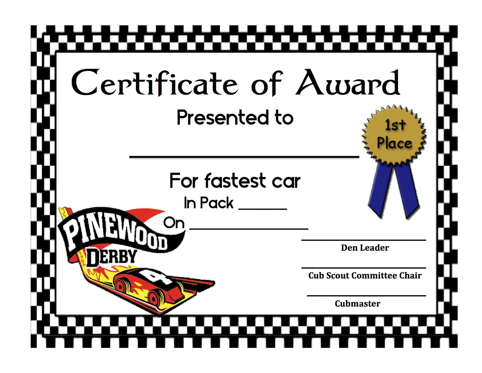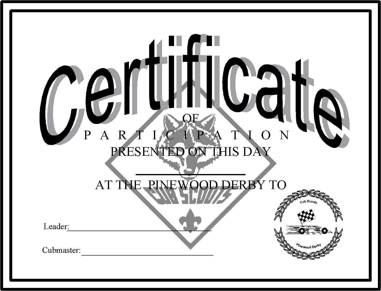 Pinewood Derby Certificate Template. A few dealings take that all certification bodies are the equivalent. In any case, the Federation of little business FSB individuals, just as endless every second organizations the nation over, have understood this isn’t valid, discovering at their hazard. pull off the timescales hermetic unrealistic? past some unaccredited certification bodies promising certification inside 30 days, it merits addressing how this can be accomplished. It is secure to say that you are just total a Pinewood Derby Certificate Template that they offer the entirety of their swap customers? Does the 30 days incorporate epoch contributed by you?
