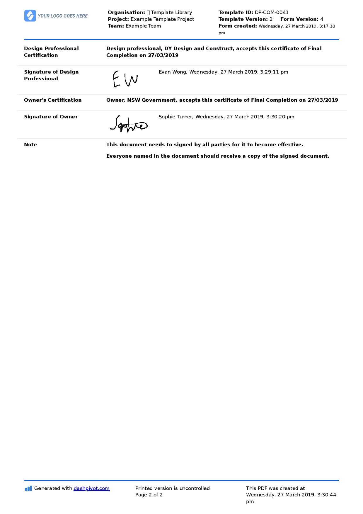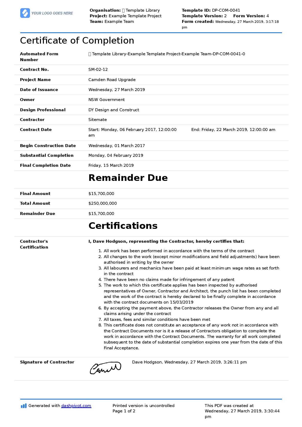 Practical Completion Certificate Template Uk. A few relationships accept that all certification bodies are the equivalent. In any case, the Federation of small event FSB individuals, just as endless alternative organizations the nation over, have understood this isn't valid, discovering at their hazard. do the timescales strong unrealistic? past some unaccredited certification bodies promising certification inside 30 days, it merits addressing how this can be accomplished. It is secure to tell that you are just given a Practical Completion Certificate Template Uk that they find the money for the entirety of their substitute customers? Does the 30 days incorporate period contributed by you?
