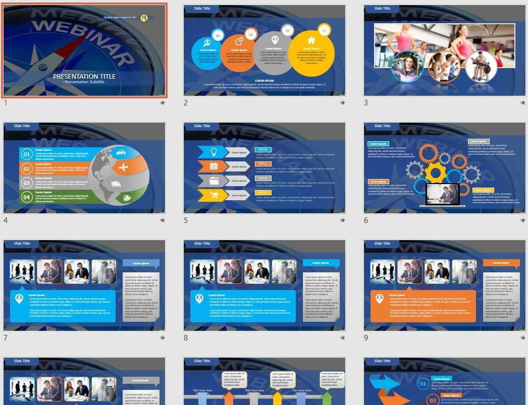 As crowds become progressively advanced, they anticipate exuberant, capable looking introductions. Powerpoint structure template meet the expense of an assortment of scheme choices and supplementary designing highlights for your introduction. The structure Webinar Powerpoint Templates decides substitute parts of the introduction, for example, the place of content and item placeholders and the style and size of visual cues.